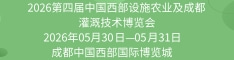 | 2026第四屆中國西部設施農業及成都灌溉技術博覽會 | 2026-05-30~2026-05-31 | 成都 | 距離開幕173天 |