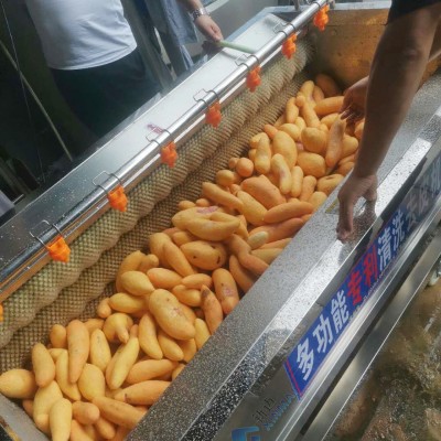 采用不銹鋼SUS304材料制作,符合出口食品衛生要求。毛刷清洗機是我公司設計的一款小型的清洗設備,其占地面積的小,清洗效果好,價格低廉,深受廣大客戶的青睞。主要針對塊狀的產品清洗,比如:土豆,胡蘿卜,山芋,馬鈴薯,紅薯,瑪卡等農副產品,魚類、扇貝、貝殼類。毛輥清洗機整機采用304不銹鋼焊接而成,美觀大方,設計合理,結構簡單,操作更簡單,便于日常維護。設備主要由框架,噴淋管,毛刷,電器,電機等幾部分組合而成。我公司生產的毛刷清洗機毛刷采用高品質,實心輥,具有不掉毛,耐磨,穩定性強等特點。毛輥清洗機配備8-13根毛輥,常用的是9根毛輥。毛刷分為常規跟波浪式兩款。根據產品的特性,配備不同的毛刷款式。毛輥清洗機運轉時,產品跟隨毛輥轉動。360度的旋轉,360度的清洗,在毛刷跟產品滾動的同時,噴淋水對產品進行沖刷,保證產品清洗無死角,有效的去除產品表面及夾縫的污垢達到良好的清洗效果。并且節省水能。毛輥清洗機的雜質排出主要原理是噴淋水的沖刷,通過毛輥的運轉,將清洗下來的雜質轉送到設備的底部,設備底部設計有回收料斗,將雜質進行統一集中排出。清洗效率,為企業降低產品的生產成本。目前常規生產的型號有:1000型,1500型,1800型,三款型號,是我公司吸取了國內外對瓜果加工機械的特點,取其優點設計制作。簡單,耗能低,占地小,效率高是它具有的特點。