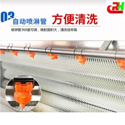 毛刷清洗機適用于土豆、蘿卜、紅薯、芋頭等各種根莖類蔬菜和水果以及藥材等物料的清洗。去皮、去泥沙、去毛發等整機采用304不銹鋼和食品級毛刷,利用旋轉毛刷配高壓噴淋,能徹底的清洗果蔬表面的污垢。該設備容積大、效率高、節約水,可連續清洗,操作簡單,使用壽命長等。使果蔬清洗去皮的首選設備。