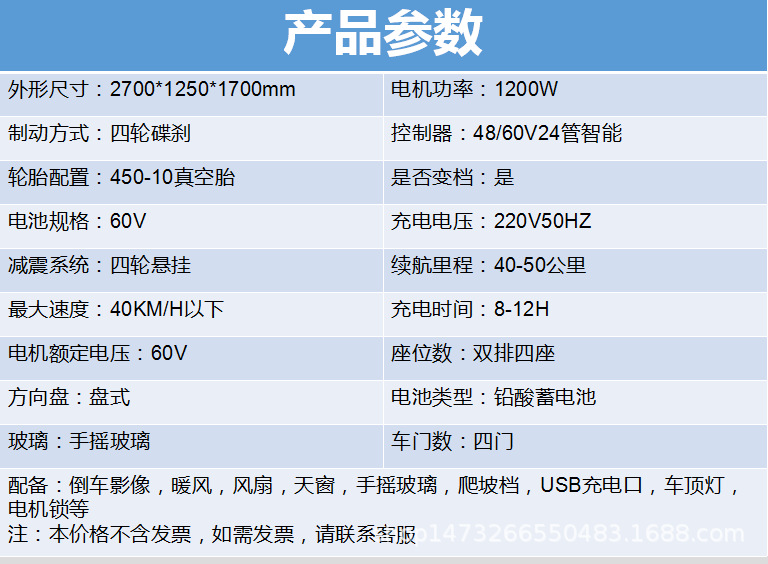 整車外形尺寸2700*1250*1700(mm)
