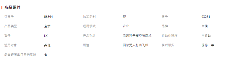 噴幅:3-4m最大起飛重量:>12kg飛控系統(tǒng):微克/極翼