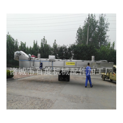 槽體板材采用304不銹鋼制作,傳送部分采用304不銹鋼螺旋網帶制作,安全可靠,無污染,符合食品衛生安全要求(不建議采用塑料網帶,容易風化易碎使用壽命短)
