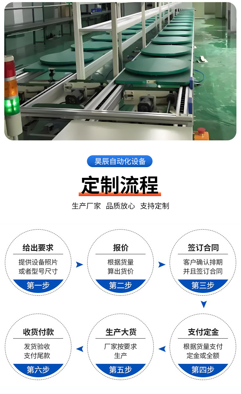 詳細(xì)信息 商品屬性 品牌昊辰 是否跨境出口專(zhuān)供貨源是 貨號(hào)HC-GTX-240813001 原產(chǎn)國(guó)/地區(qū)中國(guó) 用途半自動(dòng)組裝產(chǎn)品 適用范圍家電新能源組裝裝配 產(chǎn)地深圳 工作臺(tái)類(lèi)型總裝線(xiàn) 有可授權(quán)的自有品牌是 商品描述