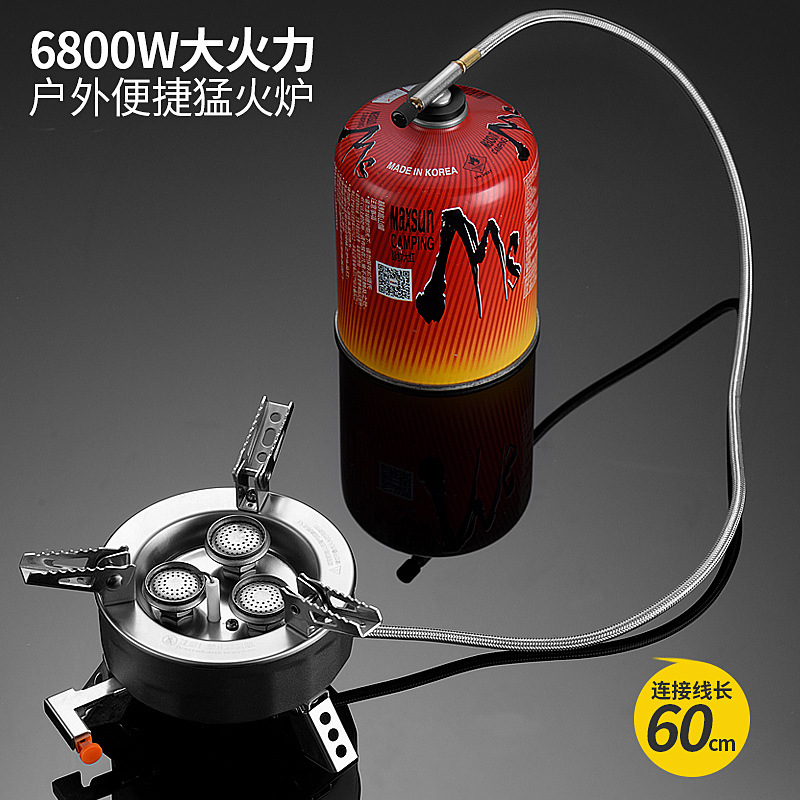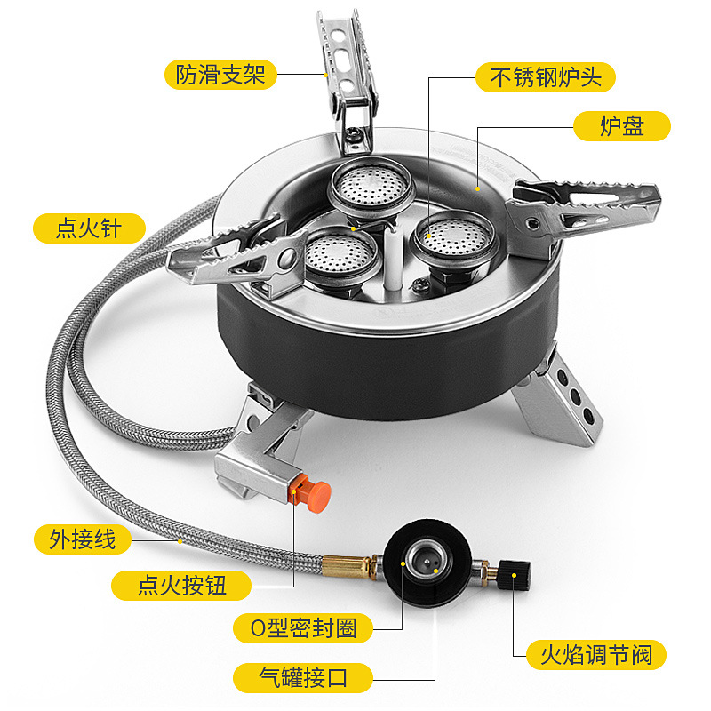 戶外三頭爐野外防風(fēng)便攜露營爐具丁烷燃?xì)鉅t兩用瓦斯?fàn)t式煤氣爐灶