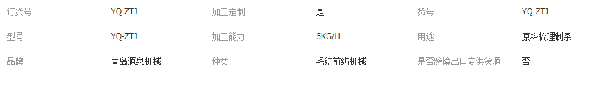 機(jī)械凈重(kg): 梳理機(jī)(500)
