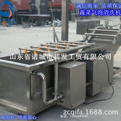 諸城市其發工貿有限公司為您提供氣泡蔬菜清洗機價格優惠設備除電機、軸承等標準件外均采用不銹鋼SUS304/2B材料制作,完全符合出口食品衛生要求。蔬菜清洗機設備中設有氣泡發生裝置,使物料呈翻滾狀態,去除產品表面農殘功效,同時可加入適量的藥劑,進行消毒固色,洗菜機里漂浮物可以從溢流槽溢出,沉淀物從口排出,以達到清洗的目的。氣泡清洗機是針對外形要求高的物料設計,適用于:蔬菜、水果、水產品等顆粒狀、葉狀、根莖類產品清洗、浸泡。