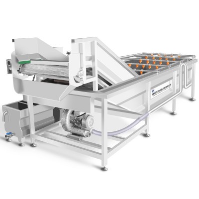 氣泡清洗機采用氣泡水浴清洗,將果蔬食品利用氣泡沖浪和水循環清洗,主要清洗去除產品上的泥沙等附著物。適用各種水果、蔬菜(新鮮菜,腌制菜、菌類菜)水產品、藥材的清洗,可根據產量大小定制,設備采用優質不銹鋼材質,符合食品衛生標準。