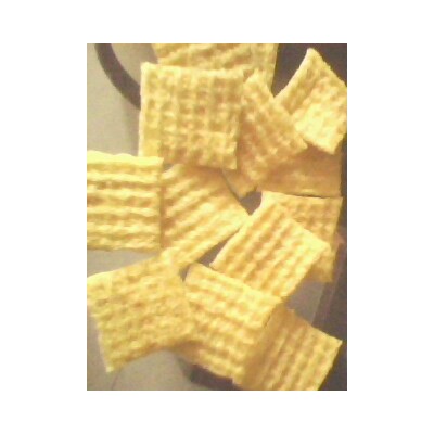 膨化鍋巴是以玉米粉、大米粉、小米粉為原料加入淀粉,螺旋式自熟機膨化后,使米粉中的淀粉部分a化,然后油炸,調味而成,該產品體積比傳統熟化壓制而成的鍋巴膨松、口感酥脆、含油量低、省設備、能耗低、加工操作簡便。