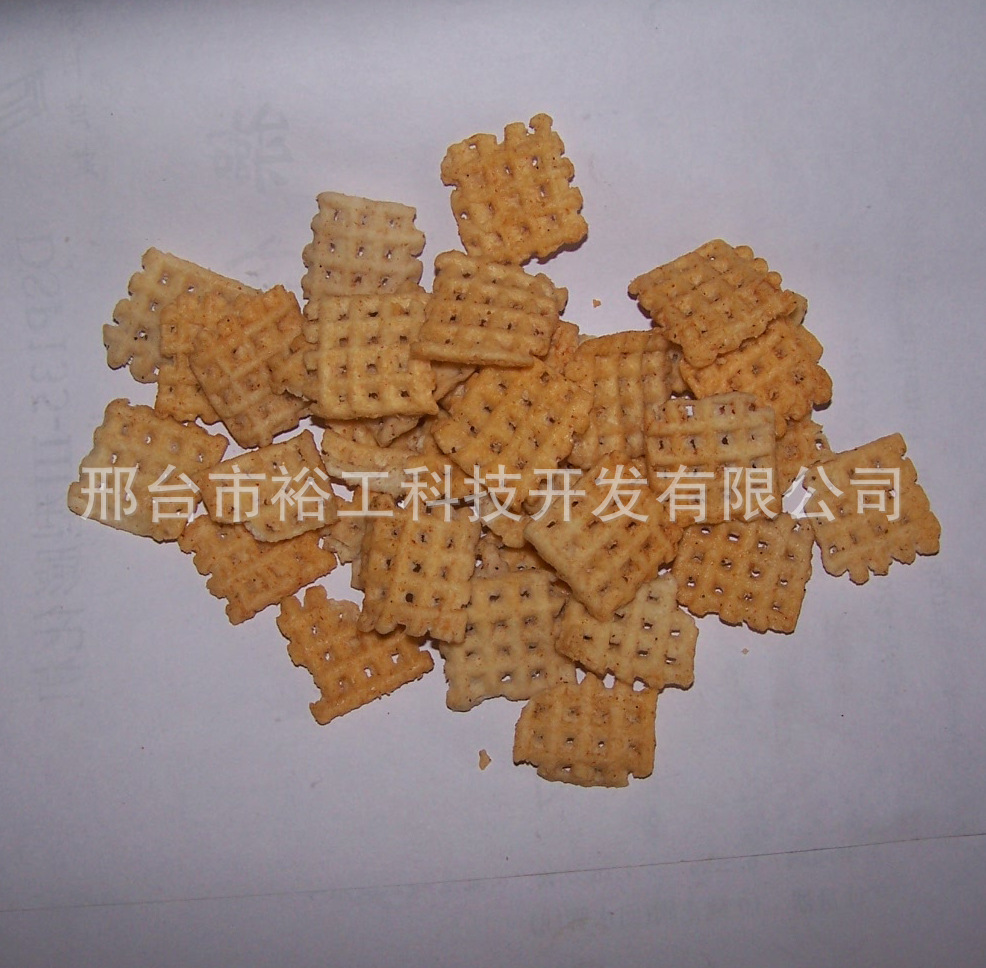 自動鍋巴成套設備是在傳統的蒸煮式鍋巴生產的技術上新改進的技術。鍋巴自動生產線集混合、蒸煮、成型(橫切和豎切一體)、烘烤、冷卻、包裝于一體,且無需鍋爐,生產工序簡化、高效、環保;原料既可以是大米粉、玉米粉、面粉等單一物料,也可是其混合料;變換模具即可改變形狀,生產的鍋巴口感酥脆而不油膩。