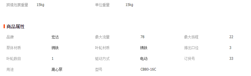 宏達(dá)CB80-16C離心泵大流量高揚程農(nóng)用單級抽水機果園農(nóng)田灌溉水泵