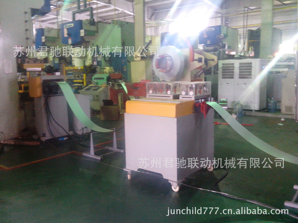 4、在料架上的材料由下方的對照光電控制,整平送料機頭可一邊整平,一邊將預先設定的送料長度之材料送至沖床模具內,通過沖床給出的電信號,在瞬間放松材料動作,下壓有力,導正材料準確。