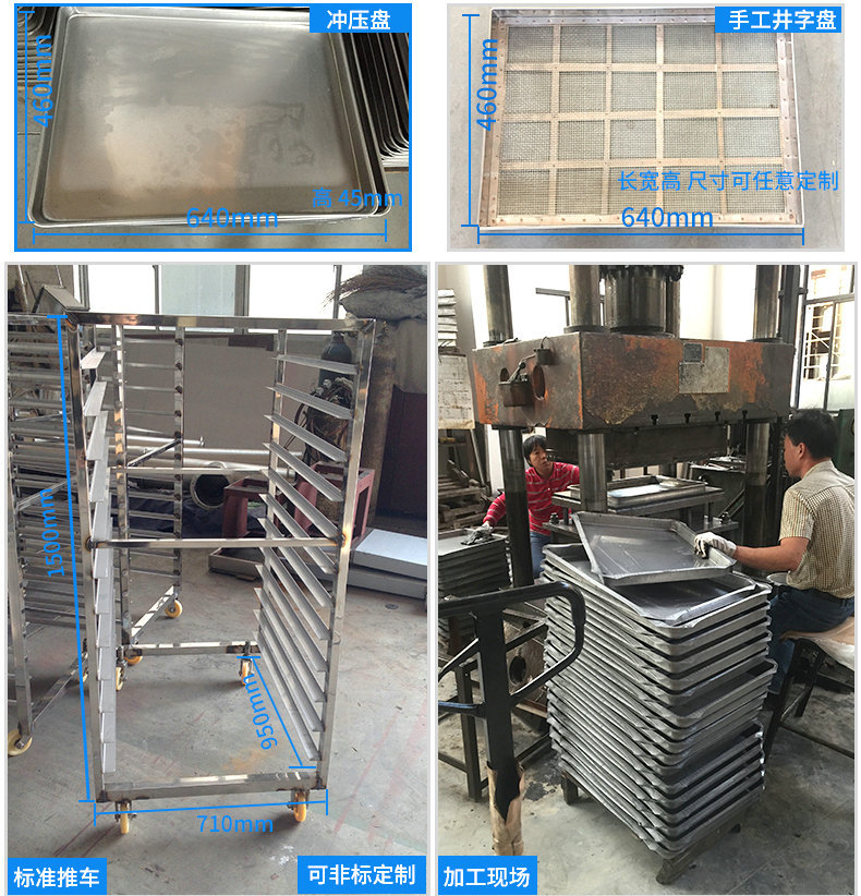 烘盤材質有:不銹鋼、鍍鋅板、鋁盤。