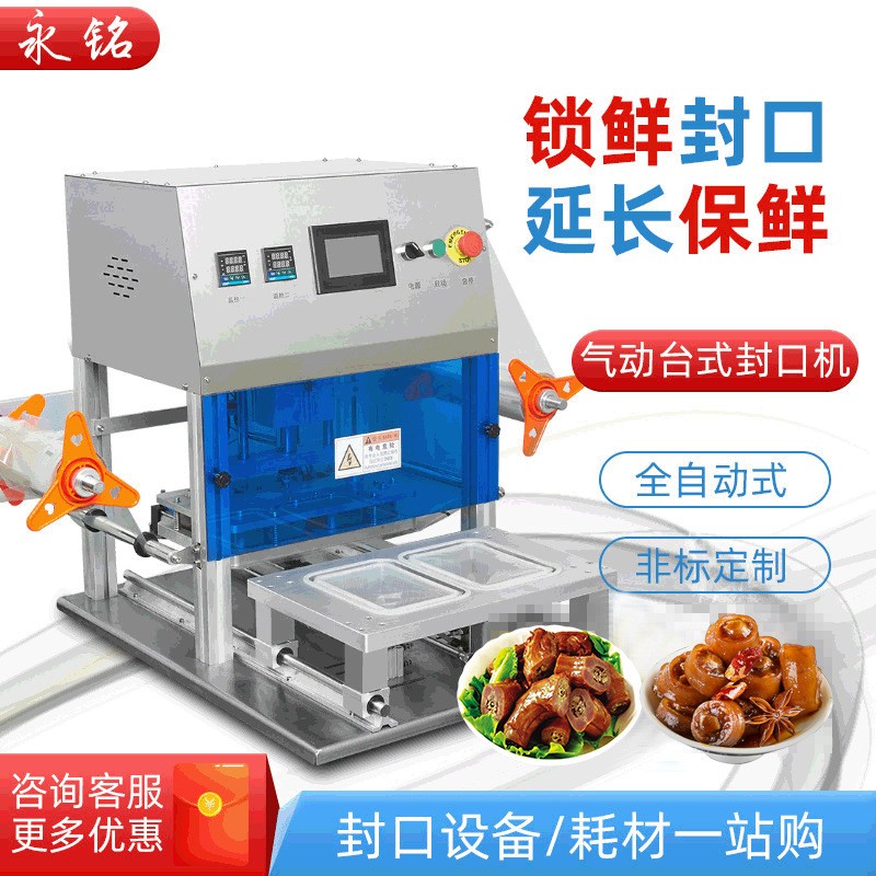 氣動一出二一出四封口機大方形圓形封碗機自動打包機打包盒快餐盒