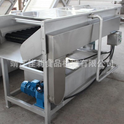 該設備適用于球形或長條圓形的果蔬清洗。果蔬原料在毛刷旋轉的推動下向前移動,洗凈度高。
