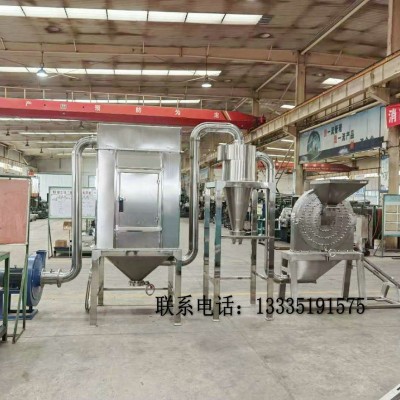 不銹鋼面條頭掛面粉碎機利用活動齒盤和固定齒盤間的相對運行,使被粉碎物經齒盤沖擊、摩擦及物料彼此間碰撞而獲得粉碎。粉碎物可直接從磨腔中排出,經出料口出來,物料經過粉碎后裝入布袋收集,粉碎后的物料收集在袋內,空氣則從布袋的細小孔眼出來。粗細可更換不同目數的篩網調節。