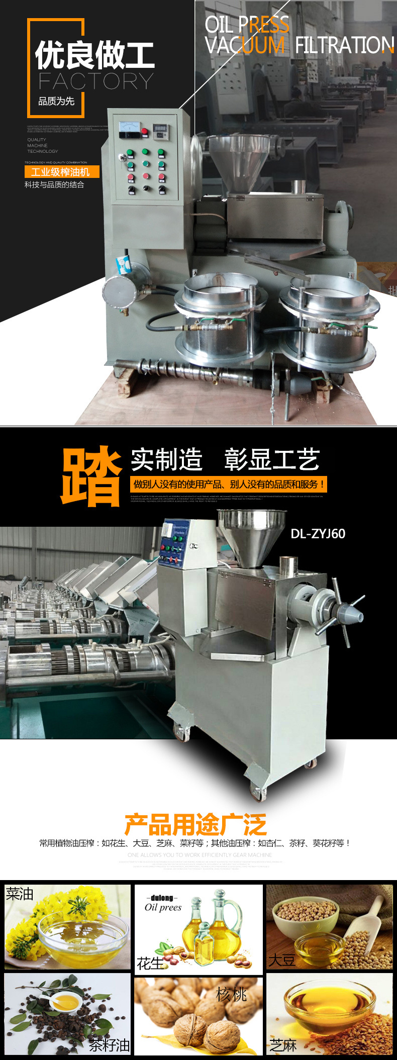 榨油機運轉時,經過處理好的油料從料斗進入榨膛。由榨螺旋轉使料胚不斷向里推進,進行壓榨。由于料胚在榨油機的榨膛內是在運動狀態下進行的,在榨膛高壓的條件下,料胚和榨螺、料胚和榨膛之間產生了很大的摩擦阻力,這樣就能使料胚微料之間產生摩擦,造成相對運動。另一方面,由于榨螺的根園直徑是逐漸增粗,螺距是逐漸減少的,因而當榨螺轉動時,螺紋使勁料胚即能向前推進,又能向外翻轉,同時靠近榨螺螺紋表面的料層還隨著榨軸轉動。這樣在榨膛內的每個料胚微粒都不是等速度,同方向運動,而是在微粒之間也存在著相對運動。由摩擦產生的熱量又滿足了榨油工藝操作上所須要的熱量,有助于促使料胚中蛋白質熱變性,破壞了膠體,增加了塑性,同時也降低了有的粘性容易析出油來,因而提高了榨油機的出油率,使有料中的油壓榨出來,并從園排縫隙和條排縫隙流出。
