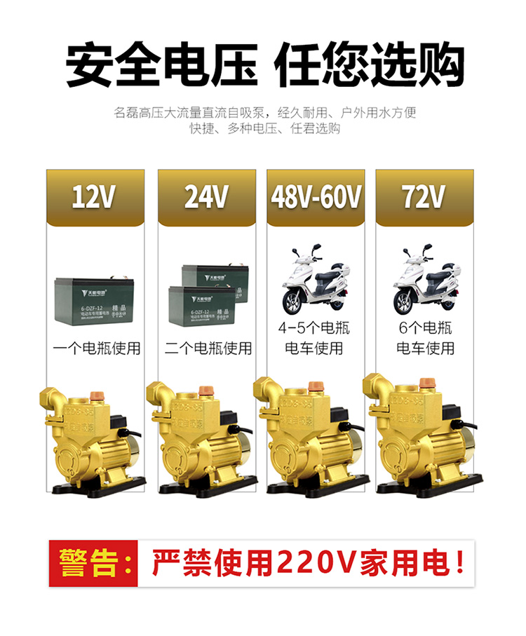 電動車戶外農用澆灌菜水井抽水泵12V24V48V大流量直流自吸泵