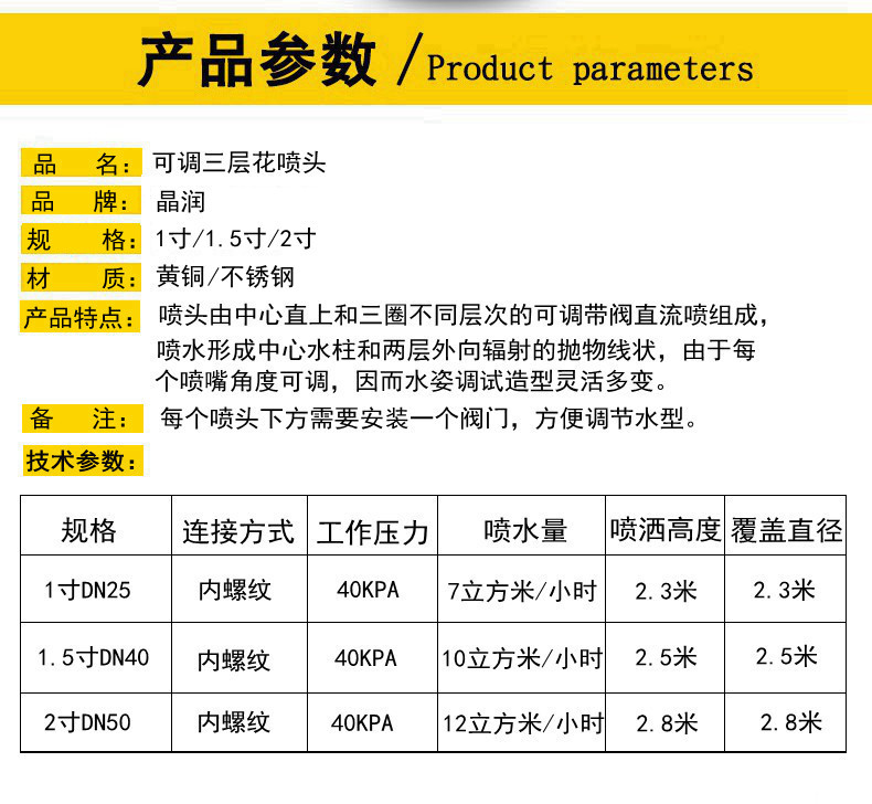 可調(diào)三層花噴頭 噴泉 水景景觀噴頭 黃銅/不銹鋼
