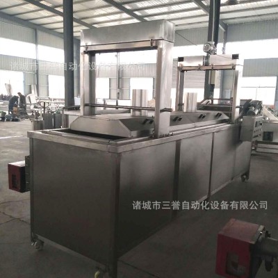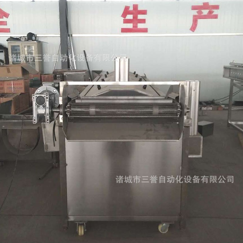 1、設備采用壓板輸送(物料成型過程)+隧道輸送(物料炸熟入味)