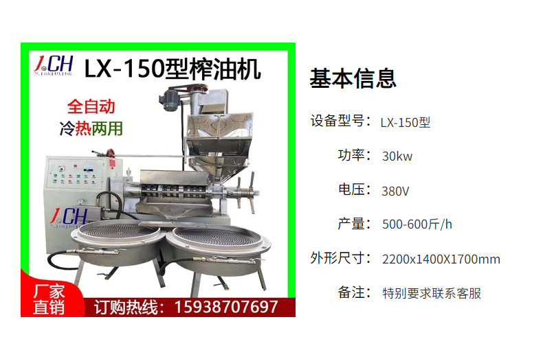 廠家貨源現貨冷熱150型商用自動榨油機 生花生商用中型油坊榨油機