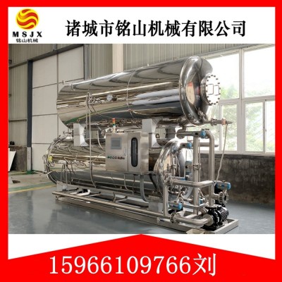 高溫殺菌鍋裝有排汽管、進水管、安全閥、壓力表、溫度計、排水管、排氣閥、液位計、電加熱棒、盛裝小車。加熱層有保溫材料,設(shè)計時考慮到傳熱面積和換熱效果達到規(guī)定殺菌要求,勞動強度低,生產(chǎn)效率高等優(yōu)點,很受用戶歡迎。