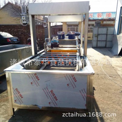 氣泡清洗機的原理主要是利用箱體前部分設備箱體中注適量的水,經過加熱管將水溫加熱,原料在經過箱體時,會與氣泡機和水的結合作用下做翻滾狀態,并隨網帶不斷向前推進,在出水面時,高端設有噴淋頭,高壓沖洗。
