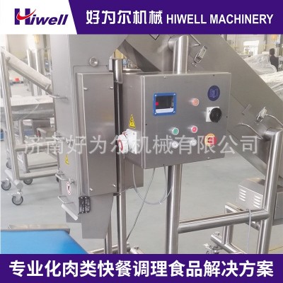 通過4組轉輥的轉動,將熟制的雞肉、豬肉、牛肉粉碎成像手撕效果的纖維