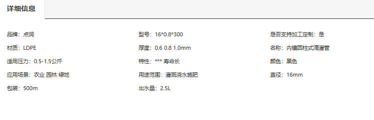 直徑16mm滴灌管 LDPE材質 點潤品牌廠家 500m包裝(面議)