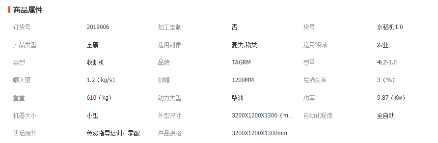 | 割幅 | 1.2m | 喂入量 | 1.2kg/s |
