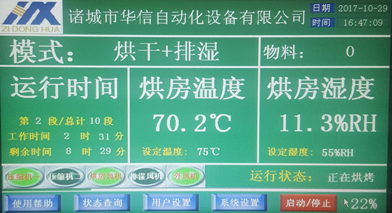 ?實時顯示烘房內(nèi)溫度、濕度、時間等各功能的運行狀態(tài)?