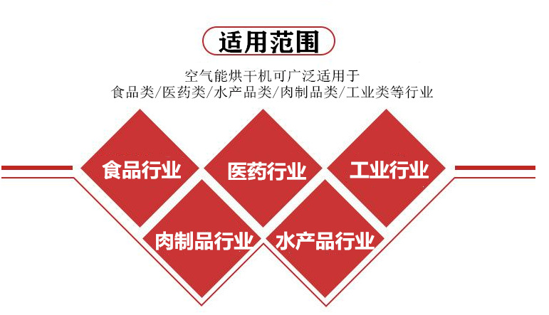應(yīng)用領(lǐng)域食品烘干、肉制品烘干、水產(chǎn)品烘干、中藥材烘干、工業(yè)烘干