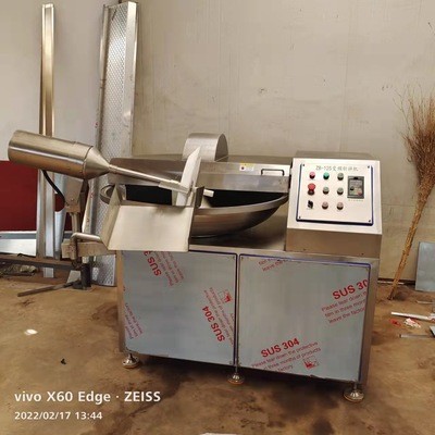 斬拌機(jī)利用斬刀高速旋轉(zhuǎn)的斬切作用,將物料及輔料斬成肉餡或肉泥。使物料的斬切時(shí)間短,溫升小,提高了物料的細(xì)膩度,可充分提取蛋白,使產(chǎn)品具有彈性強(qiáng)、乳化結(jié)果好、出品率高等特點(diǎn)。