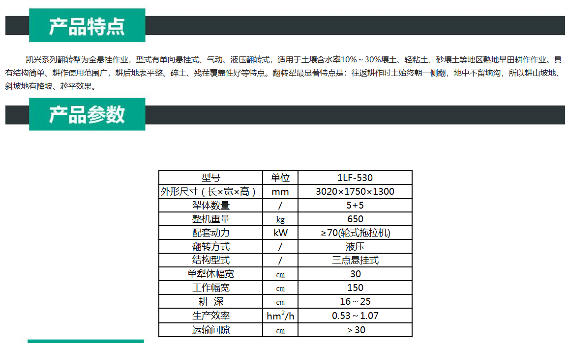 凱興1LF-530深耕鏵式翻轉犁