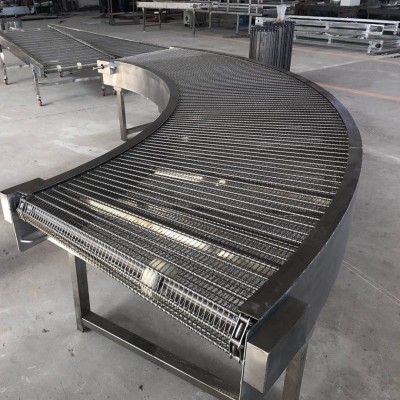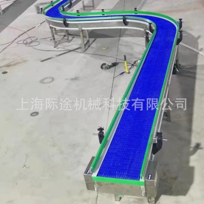 模塊式塑料網帶輸送機是對傳統皮帶式輸送機的一次革命,它克服了皮帶輸送機維護困難,帶子易被撕裂、刺破、腐蝕的缺點,為客戶提供的一種安全、快捷、維護簡單的輸送方式。由于此類輸送機使用模塊式塑料輸送帶,而且傳動方式系采用鏈輪驅動,所以輸送帶不易蛇行、偏斜,并且由于帶子厚實可以經得起切割、碰撞,及耐油、耐水等特性,使得各業界使用時不致在維修保養上產生困擾,尤其在更換輸送帶上更減少一筆開銷。