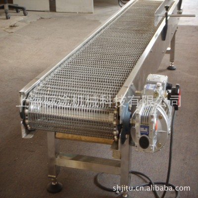 金屬網帶輸送機用途廣泛,輸送帶的材質可為碳鋼、不銹鋼。
