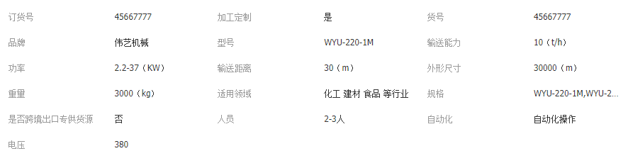 U型螺旋輸送機具有結(jié)構(gòu)簡單,制做成本低,密封性強、操 作方便等優(yōu)點,中間可多點裝、卸料。廣泛用于化工、 建材、冶金、糧食等部門。 螺旋機廣泛應(yīng)用于各行業(yè),如建材、化工、電力、冶金、煤礦炭、糧食等行業(yè),適用于水平或傾斜輸送粉狀、粒狀和小塊狀物料,如煤礦、灰、渣、水泥、糧食等。 螺旋輸送機的技術(shù)特點 -螺旋輸送機與其它輸送設(shè)備相比,具有整機截面尺寸小、密封性能比較好、運行非常平穩(wěn)可靠、中間可設(shè)置多點裝料和卸料及操作、維修簡便等優(yōu)點。 螺旋輸送機通常由螺旋輸送機本體、進出裝置、驅(qū)動裝置三大部分組成。 螺旋機本體由頭節(jié)、中間節(jié)、尾節(jié)三部分組成