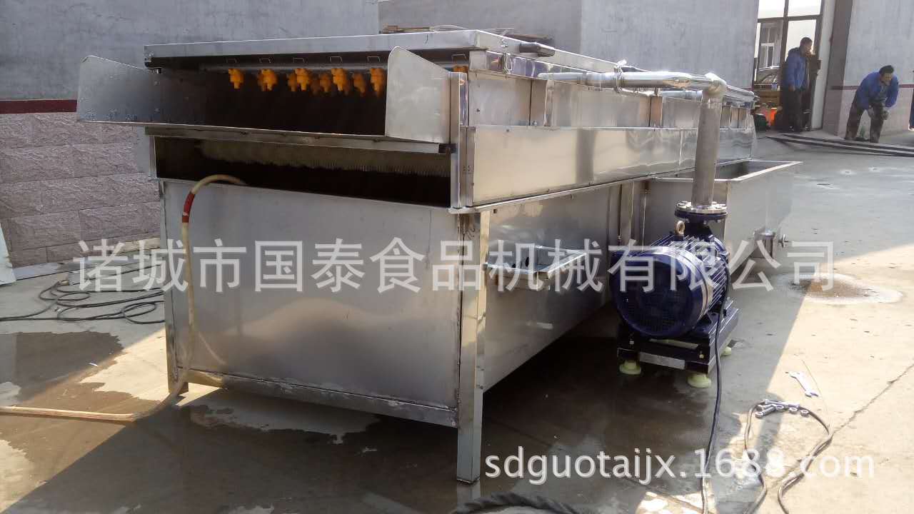 山藥毛輥清洗去雜機采用SUS304不銹鋼制做,設備上部有高壓噴淋對果蔬表面進行沖洗可有效的洗去表面粘有的泥沙、中間有毛輥,通過毛輥的轉動帶動果蔬的前進,并對物料的表面進行刷洗可深層清洗果蔬表面粘連的不易沖洗的雜物,毛輥采用雙層毛刷可以將表面的毛發和纖維物的清除。經毛輥清洗去雜機去除毛發及纖維雜物后,提高了果蔬的潔凈率。下部可進行水收集使之能循環利用,節約了成本。