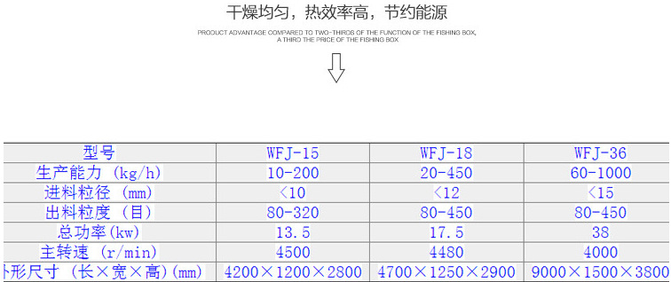 詳細信息 商品屬性 訂貨號CZWS201801 品牌萬勝 貨號CZWS201801 型號WFJ-15型 適用物料食品 飼料 化工 藥材 應用領域食品 飼料 化工 藥材 生產(chǎn)能力10-200(kg/h) 主軸轉(zhuǎn)速4500(r/min) 進料粒度≤10(mm) 電機功率11(KW) 出料粒度80-300(mm) 外形尺寸4.2*1.2*2.3(m) 重量850(kg) 粉碎程度超細磨機 物料含水量5%以下 原理