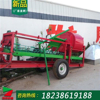 8000系列花生摘果機是2018新款機器,比上款增大了軸承加快了動力輸出,將帶果花生秧從喂料口喂入后,固定在主軸上的橫向螺旋輸送攪龍帶動下使帶果花生秧處于離心旋轉狀態,在摘果機的阻攔下,將花生從花生秧上分離下來,摘下果的花生秧在衡向螺旋輸送攪龍旋轉帶動下被輸送到排料盤去。分離下的花生果及破碎的莖、葉、土雜經欄條隙落進機具的振動篩上,經振動棒晃。土雜被清除出去,花生果及破碎的莖、葉被傳遞到風選裝置下經兩次,風選,干凈的花生從震動篩出口處留出,完成花生摘果清洗作業。