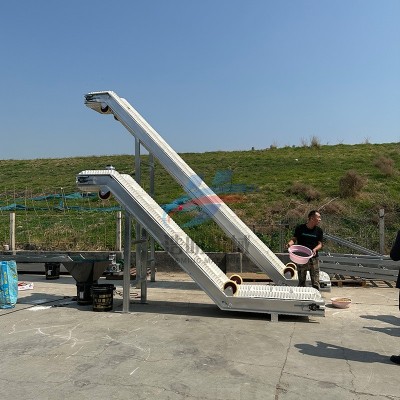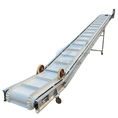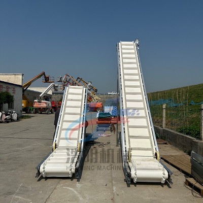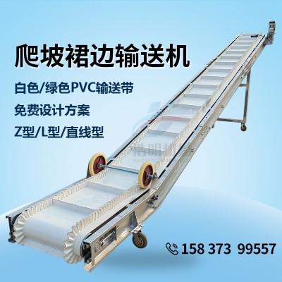 PVC裙邊皮帶輸送機(jī)的輸送帶材質(zhì)為PVC,輸送帶上面有橫隔板,兩邊有裙邊,適合傾斜角度較大的場(chǎng)合適用。相對(duì)于普通皮帶輸送機(jī)有著輸送角度大、占地面積小等特點(diǎn)。常用來短距離的輸送、上料、提升用途。