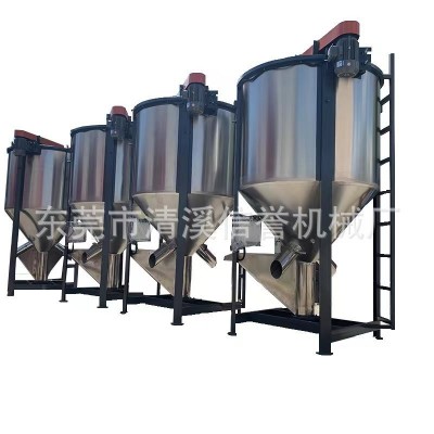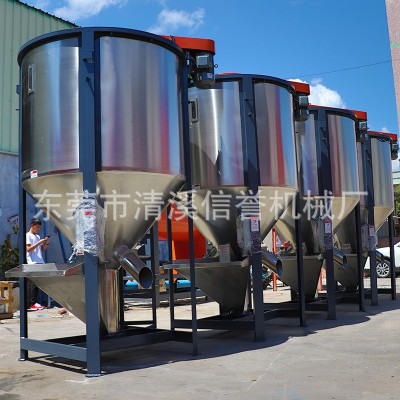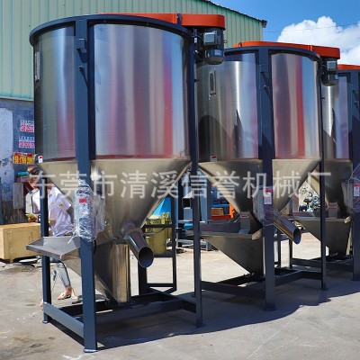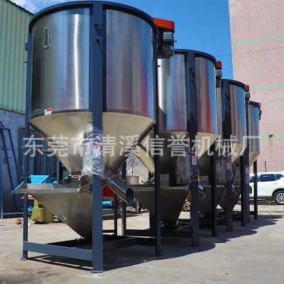 立式攪拌機的工作是利用螺桿的快速旋轉(zhuǎn)將原料從桶體底部提升至頂部,再以傘狀飛拋散落,回至底部,這樣原料在桶內(nèi)上下翻滾攪拌,短時間內(nèi)即可將大量原料均化的混合完畢,可以將潮濕的破碎料,顆粒料通過熱風烘干,達到成型和抽粒效果。